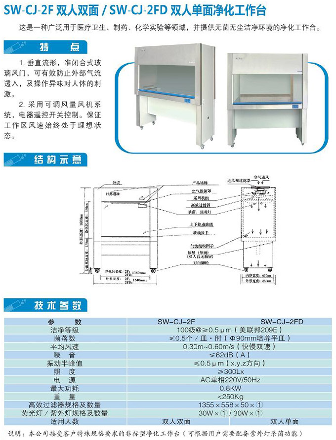 雙人單面凈化工作臺